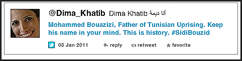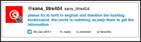 >>> & I started to spend time in Birdland every day, as the drama of the uprising in Tunisia & then in Egypt was unfolding. The first person ever to answer me on Twitter was @Souihli, from Tunis, after I retweeted & translated something from French—@Souihli explained that more people would get the message if I knew what a hashtag was. (Shukran.)